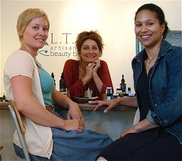 Erin Van Cott, Nini Ordoubadi, and Tiffany Wheat at Tay Tea Bar and LBT Botanicals.