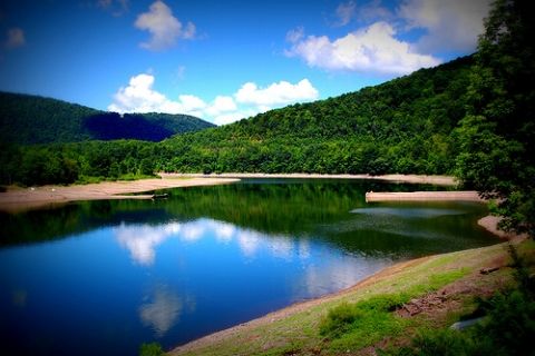 Above: The Cannonsville Reservoir looking serene, if a bit low on water, in July of 2012. Photo by Flickr user mountain_man_ny_2; published under Creative Commons license.