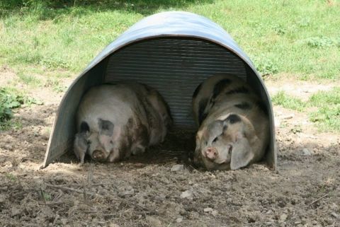 Two Gloucestershire Old Spot pigs take a nap in the shade at Horton Hill Farm in Jefferson. Photo taken during Schoharie County Family Farm Day, Saturday August 17, by Jennifer Strom. For more photos from Family Farm Day, see the Catskills Food Guide's Facebook page.
