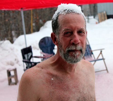 Above: Brian Olenych, fresh out of the sauna, is warm enough for anything in Arkville on Saturday, Feb. 14. Photos courtesy of Marcia Olenych.